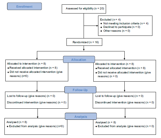 CONSORT flow diagram revealing participants flow through the study. The diagram shows enrollment, allocation, follow-up and analysis of participants.
