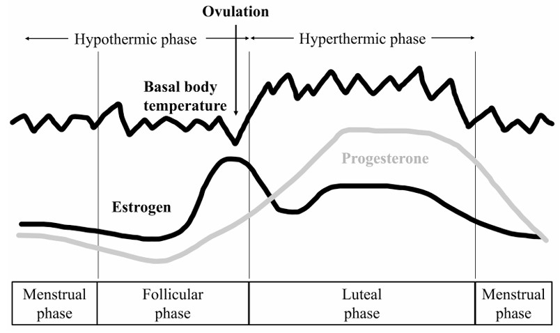 Changes in basal body temperature and hormones associated with menstruation.